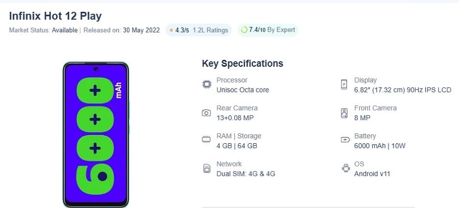 The Infinix Hot 12 Play is available in India at an affordable price:
